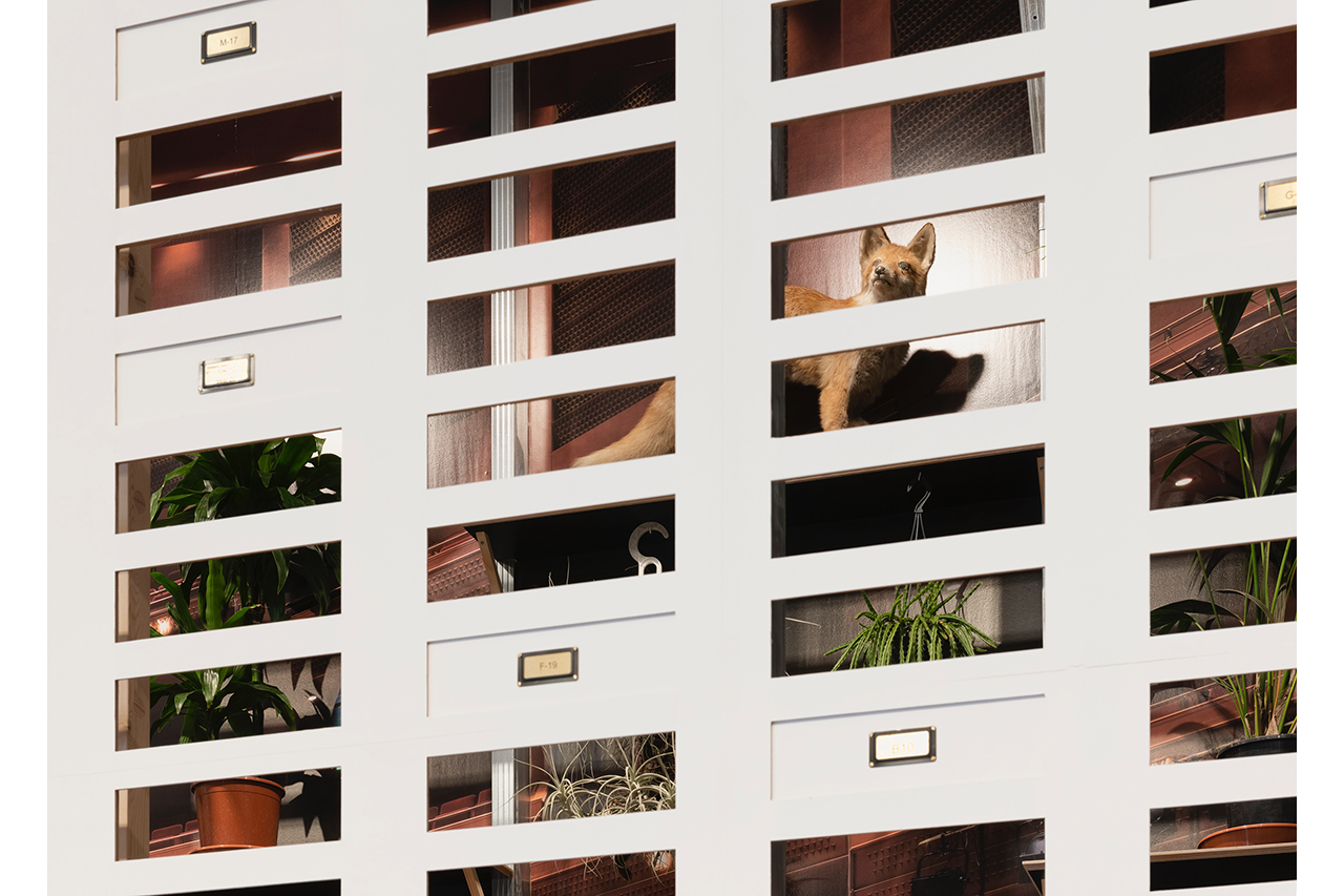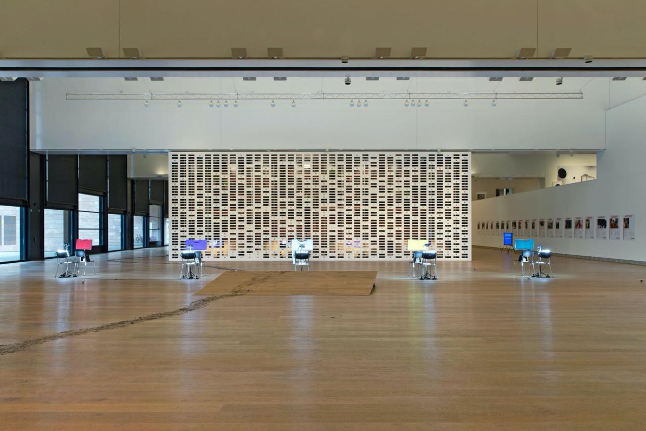 In addition to this sound, a stage made of floorwood from an abandoned factory in Basel, a stuffed animal that was also left in a warehouse, a video to show the contents of the refrigerator, and a huge photo of the theater seats, the number plates on the seats where silent recordings were made in each theater, etc. make up this work.
